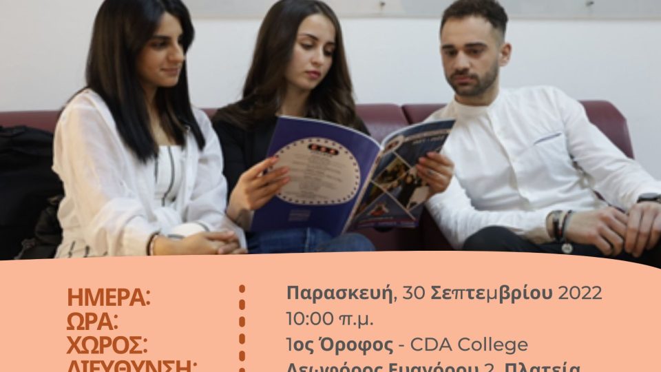 Map Unavailable Date/Time Date(s) - 30/09/202210:00 am - 1:00 pm Location C.D.A COLLEGE NICOSIA - CENTRAL CAMPUS